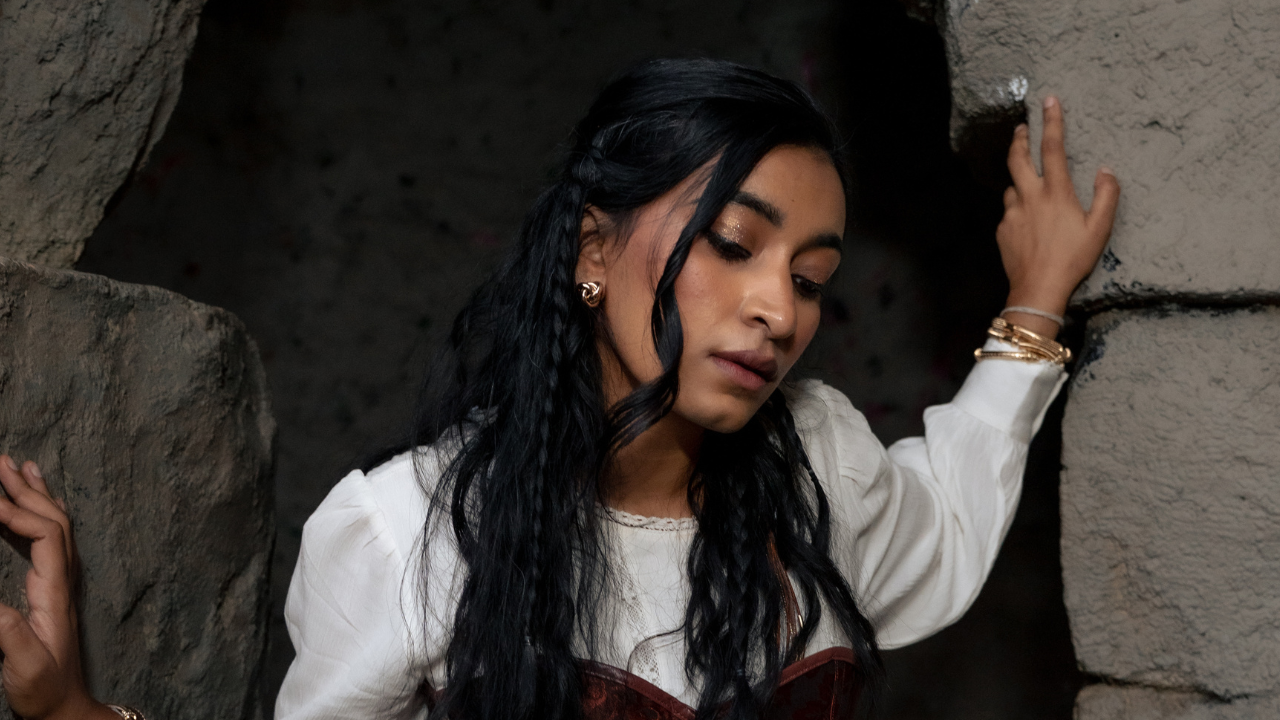 The woman stomps thrice. Then she stomps twice again. She stomps, then drags her nails against the walls, then stomps. You hear one more stomp. Finally, one more drag of the nails, and a final stomp.